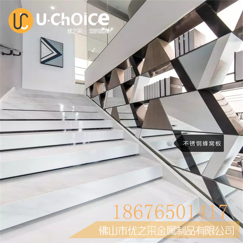 佛山市優(yōu)之采不銹鋼蜂窩板廠家是以鍍鋅板與不銹鋼覆層結合而成的金屬復合蜂窩板,它的主要特點是鍍鋅板和不銹鋼形成牢固的冶金結合,可以進行熱壓、冷彎、切割、焊接等各種加工。